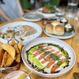 I cannot rave enough about how amazing all the dishes are. Every dish was extremely well seasoned and had great flavor profile, large portion sizes, and fresh ingredients. Our favorite dish had to be the trout! The avocado tahini Cesar was an interesting twist on the salad and the added chicken came on a skewer, fun, and had a smoky flavor. Sea scallops and risotto were creamy and not too salty. And rigatoni bolognese was such a classic dish, done so well! Server was very attentive and well versed in the menu. Atmosphere is lovely as always for a nice family dinner, date, birthday dinner, or business lunch meeting! Indoor and outdoor seating. Recommend making a reservation for weekends as it can get busy! The blossom mimosa was so light and refreshing!